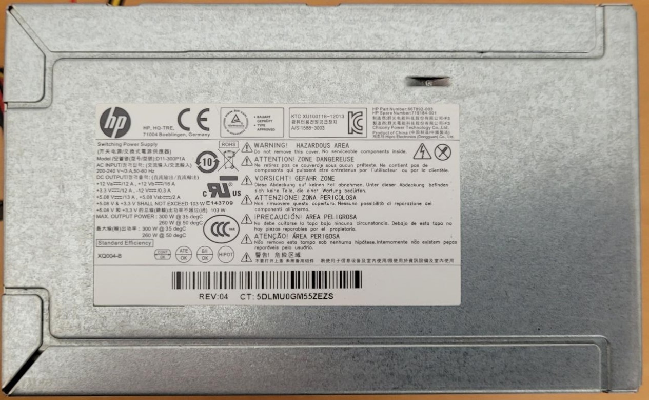 HP 667892-001 MODEL 300W Computer Power Supply Tested Working ( D300A002L-HW01-01 )