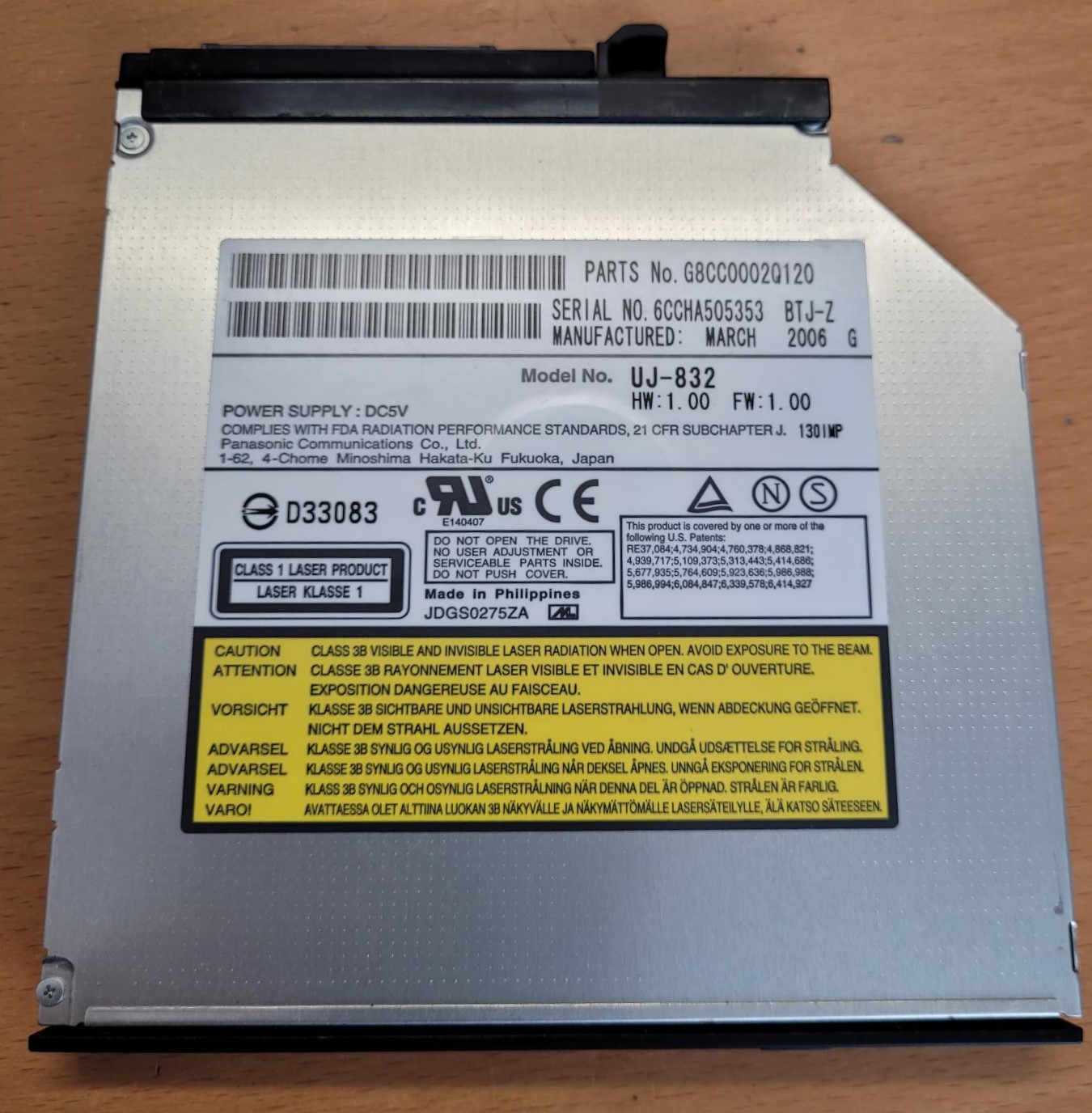 Optische Drive Dvd RW Panasonic UJ-832 Voor Laptops (Ide Interface) ( G8CC0002Q120 )